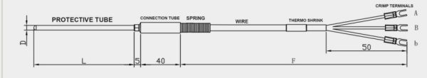 PT100 A 3.0 Hi-Temp Teflon PTFE Wrapping 350 Three-Wire Pin Terminal