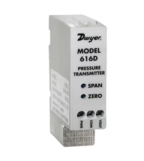 The Series 616D Din Rail Differential Pressure Transmitter senses the pressure of