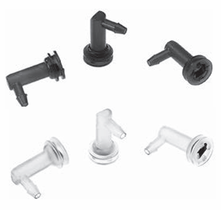 This Elbow Plug-in Adapter is for Product Group 19X. Fits on 5/32″ (4 mm) OD Polyethylene Tubing, Use with Compression Rings, Blue, For Quick Thermostat Removal